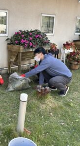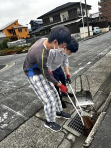 毎週水曜日、コルポの休業日にお庭の草や落ち葉を取ったり、側溝のごみを拾ったりします。