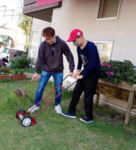 少しずつ草を入れたりするのが早くなったり、芝刈り機の使い方が上手になっています。