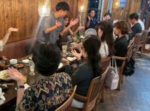 スパイスのきいたローストチキンやナシゴレンを食べながら、普段の業務中はなかなかゆっくり話せない話に花を咲かせ、和気あいあいとした雰囲気で行われました。