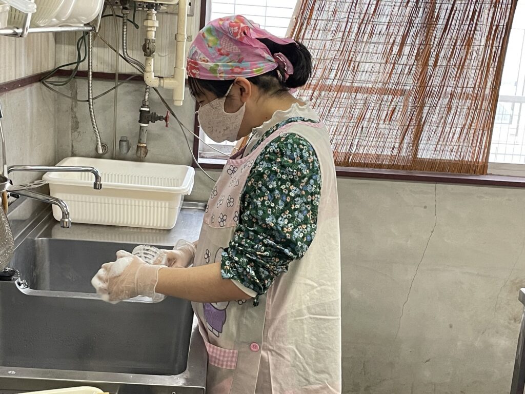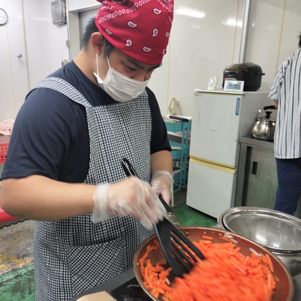 普段はお弁当、給食作り等の調理や金属の仕分け、花火の箱の組み立て等の作業を行っています。また、依頼があれば進んで地域のお仕事のお手伝いもさせていただいています。今あるつながりを大切にしつつも、さらに利用者様が輝けることを探し、挑戦し続けていきます。