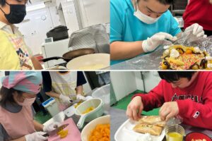 • 10月 ハロウィンイベントではクレープとポテトフライを作りました。クレープを焼くのは少し難しかったですが、具材をたっぷり乗せて完成!みんなで美味しくいただきました。